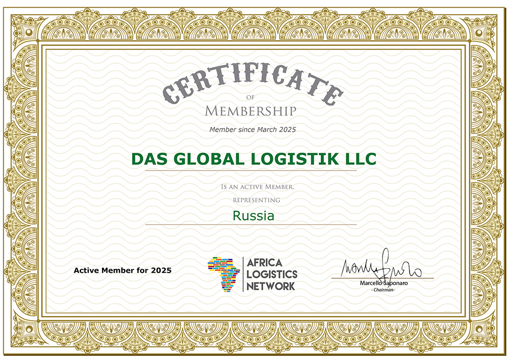 - Сертификат, подтверждающий членство в Africa Logistics Network (ALN) на 2025 год.
