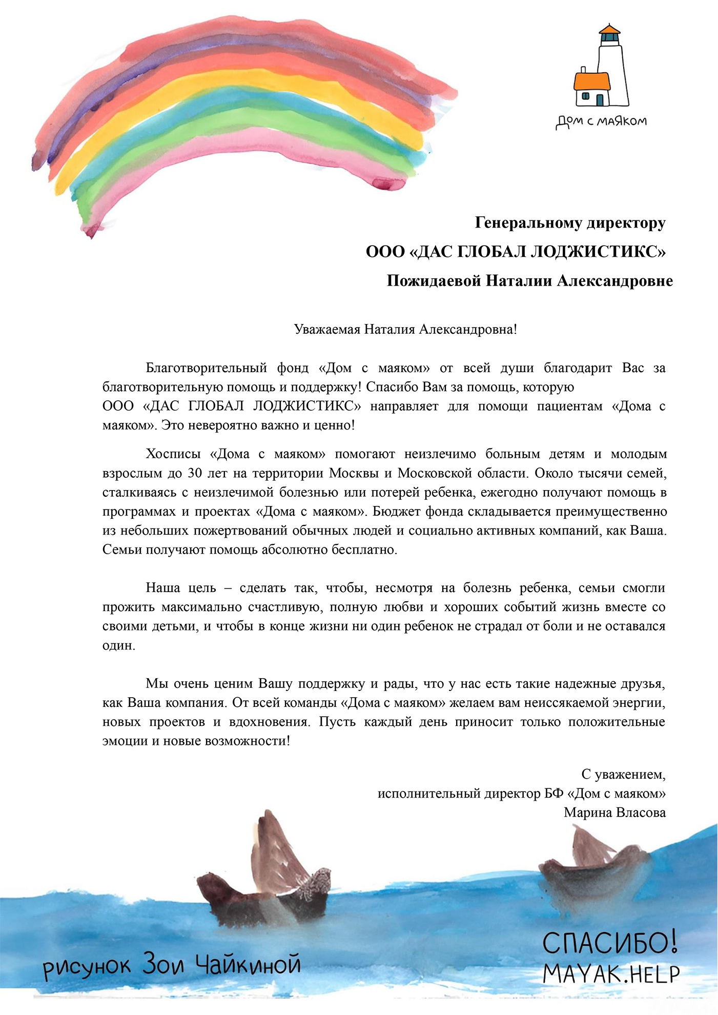 Благодарственное письмо / Фонд «Дом с маяком»
